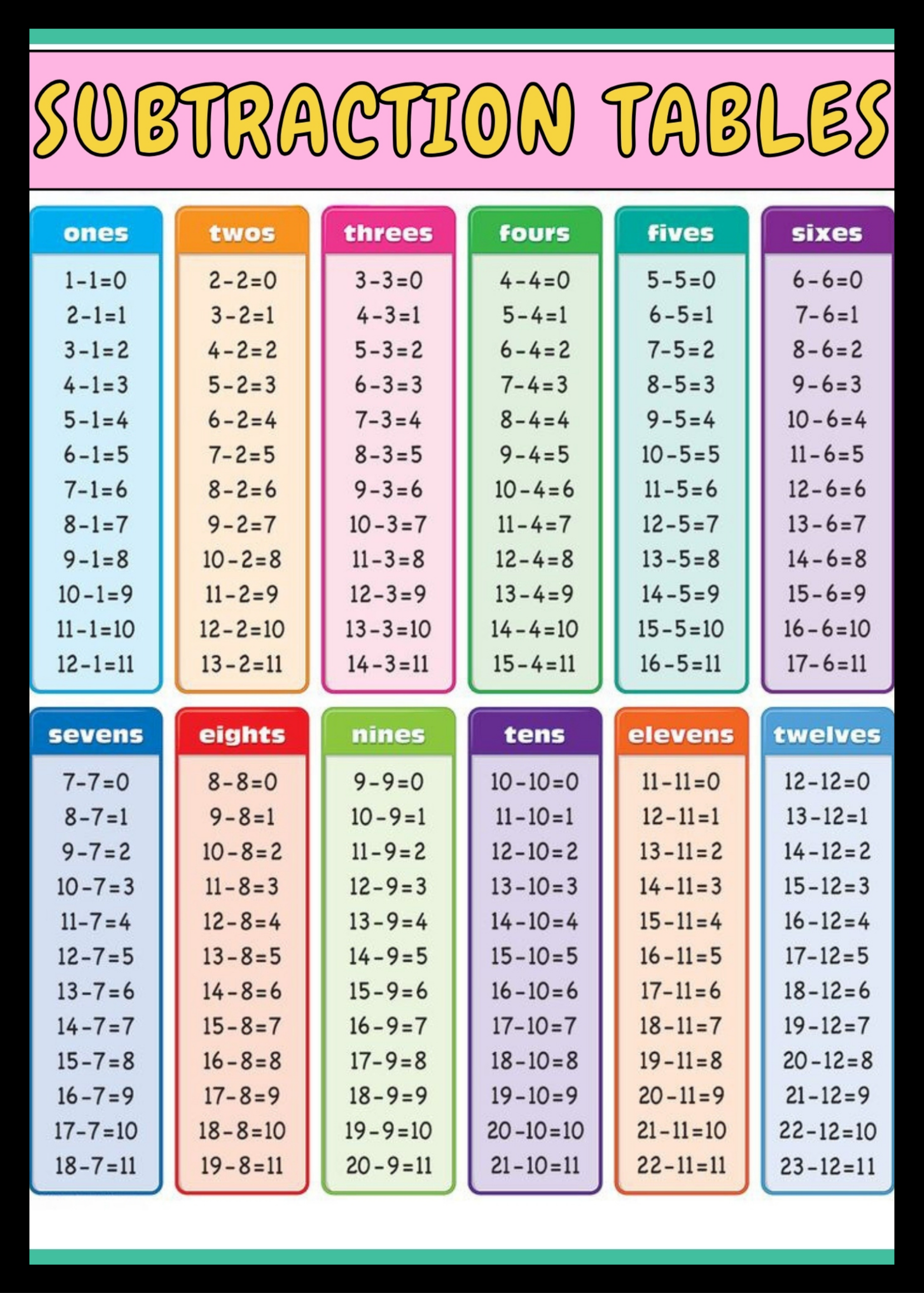 Substraction tables